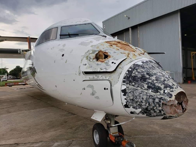 Old  Default Máy bay hạ cánh ngoạn mục khi bị mưa đá tấn công nát đầu