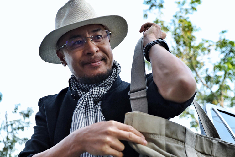 Ông Vũ đến tòa khá sớm. Ảnh: Hữu Khoa.