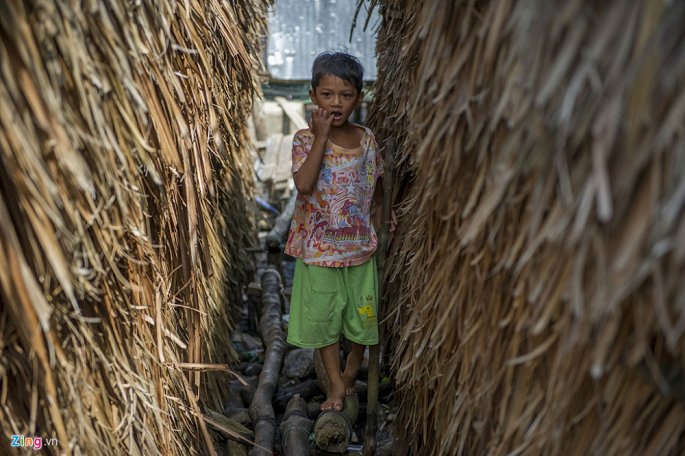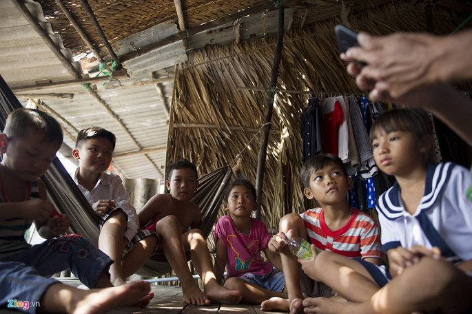 Trẻ con xóm đảo quây quần với nhau trong lúc cha mẹ vắng nhà. Không có nơi vui chơi, nhiều em không được đến trường, hoặc bỏ học.