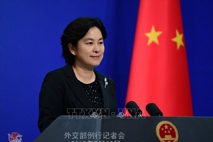 Người phát ngôn Bộ Ngoại giao Trung Quốc Hoa Xuân Oánh tại cuộc họp báo ở Bắc Kinh. Ảnh: IRNA/TTXVN