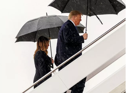 Đoạn video được truyền thông Mỹ đăng tải cho thấy ông Donald Trump dường như quên mất đệ nhân phu nhân của mình. Tổng thống Mỹ cầm ô đi một đoạn xa trước khi nhận ra bà Melania không có ở bên cạnh và phải dừng lại chờ vợ trên bãi cỏ của Nhà Trắng.