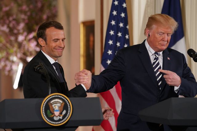 Ông Macron đã dành cho ông Trump sự đón tiếp nồng hậu, từ diễu binh quân sự, ăn tối tại tháp Eiffel cho tới những cái nắm tay. Mặc dù khi đó còn bất đồng về nhiều vấn đề, song hai nhà lãnh đạo vẫn dành cho nhau sự quý mến.