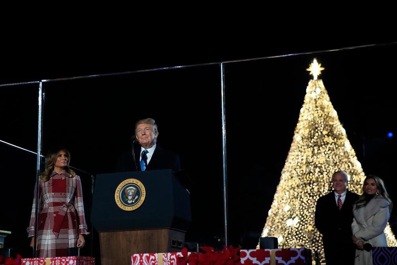 Tổng thống Trump và Đệ nhất phu nhân Melania Trump đã tham dự buổi lễ Thắp sáng cây thông Giáng sinh quốc gia tại Công viên The Ellipse, bên ngoài Nhà Trắng cùng hàng trăm khách mời và một vài quan chức, theo tờThe Hill.