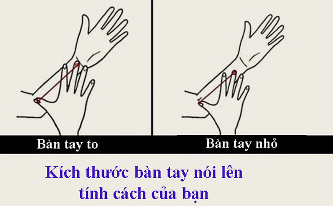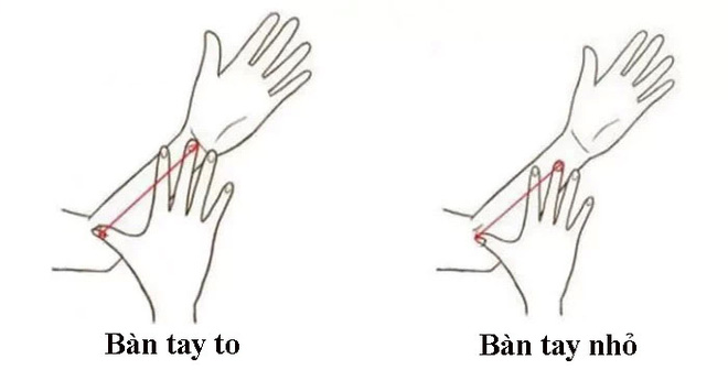 Hãy xem bàn tay mình to hay nhỏ thì hãy đo găng bàn tay so với chiều dài cánh tay, như hình ảnh dưới đây để biết được kích thước bàn tay nói lên tính cách bạn, nhưng những người có ngón tay ngắn có thể rất giỏi lãnh đạo