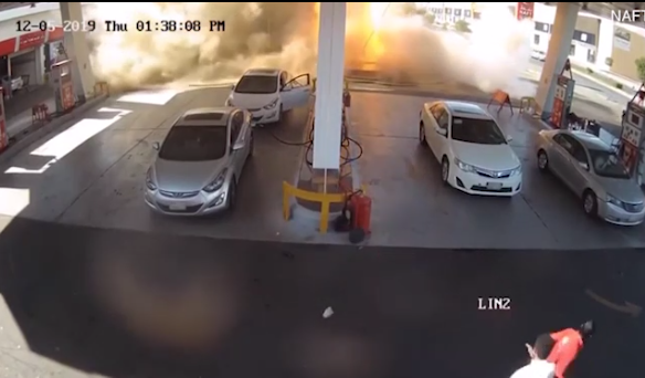 Camera an ninh tại trạm xăng đã ghi lại toàn bộ sự việc và phản ứng của các khách đang có mặt tại hiện trường vụ nổ.