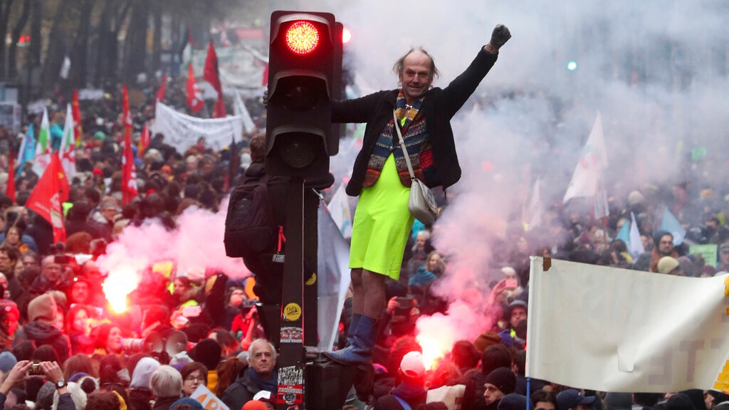 Các công đoàn Pháp lên kế hoạch biểu tình với quy mô lớn hơn vào tuần tới. Ngày 5/12, các nhân viên đường sắt, nhân viên bệnh viện, nhân viên nhà máy lọc dầu, lao công, giáo viên, cảnh sát và lính cứu hỏa đã xuống đường tuần hành phản đối kế hoạch cải cách hệ thống hưu trí quốc gia. Sang ngày thứ 2, các cuộc tuần hành không có dấu hiệu dừng lại. Ảnh: AP.