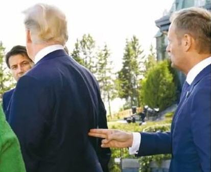 Bức ảnh gây này được chụp tại Hội nghị thượng đỉnh G7 tại Canada tháng 6/2018. Hành động của ông Tusk bị lên án khi diễn ra vào thời điểm cực kỳ căng thẳng trong chính trị phương Tây.