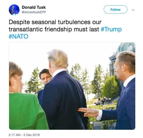 Ông Tusk đăng bức ảnh gây tranh căi trên sau khi Thủ tướng Canada Justin Trudeau bị bắt gặp cùng lănh đạo Anh, Pháp và Hà Lan b́nh phẩm về Trump trong một cuộc gặp bên lề Thượng đỉnh NATO diễn ra ở London vừa qua.
