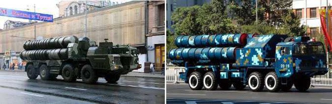 Hệ thống tên lửa phòng không HQ-9 của Trung Quốc có nhiều tương đồng với hệ thống S-300 của Nga (trái).