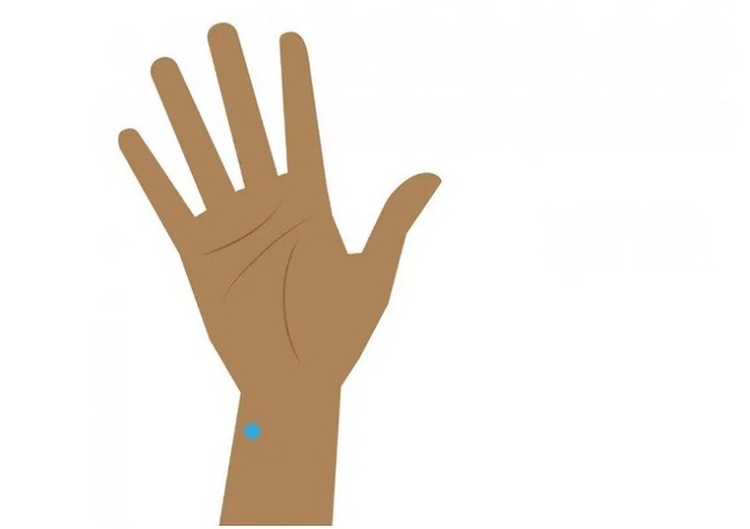 Huyệt Thần môn (HT7) nằm ở mặt dưới của cổ tay, phía bên trong. Hăy sử dụng ngón cái ấn vào huyệt thần môn và day ấn huyệt khoảng 10 lần, khi ấn có cảm giác căng tức năng th́ giữ khoảng 30 giây.