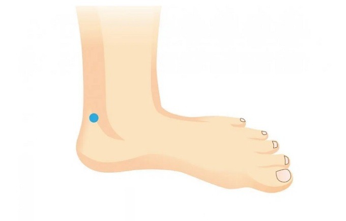 Huyệt Thái Khê nằm giữa đường nối của mép trong gân gót và bờ sau mắt cá chân trong.