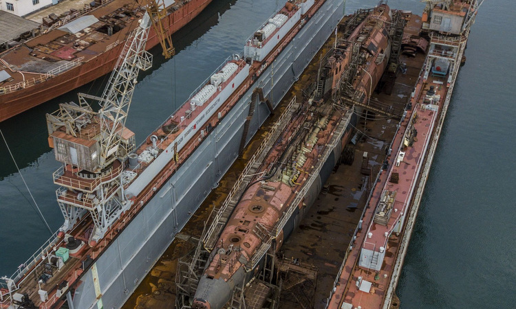 Tàu ngầm B-380 và ụ nổi PD-16 hồi đầu năm 2019. Ảnh: Livejournal/Lana Sator.