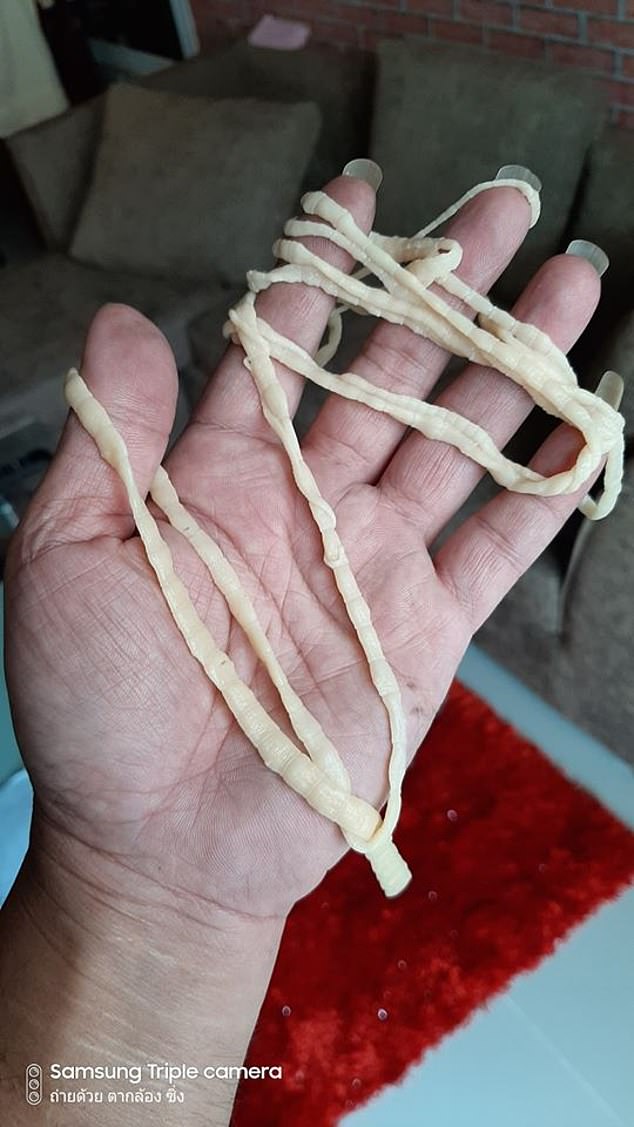 Sau khi lôi con sán dây đáng sợ ra ngoài, Kritsada đã kịp chụp vài tấm ảnh rồi ném nó xuống bồn cầu và nhấn nước để con sán dây nhanh chóng biến mất.