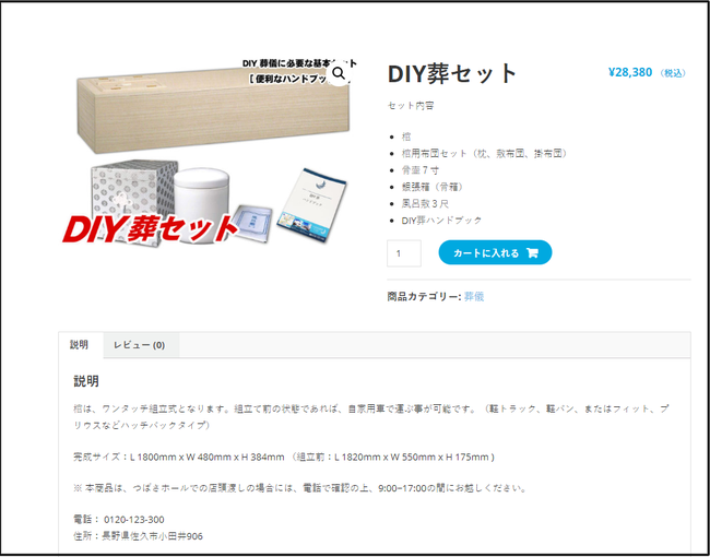 Tsubasa, một công ty chuyên dịch vụ tang lễ ở tỉnh Nagano, đã bắt đầu cho đặt trước bộ sản phẩm DIY tang lễ.