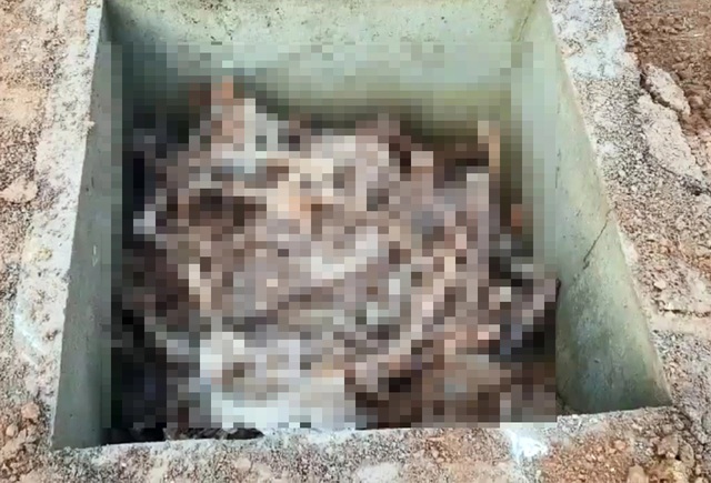 Theo các quan chức, khoảng một nửa số hài cốt tìm thấy chôn sâu khoảng 0,2 mét, trong khi một nửa còn lại được tìm thấy ở vị trí sâu hơn trong lòng đất bên trong một hầm bê tông, có chiều rộng, chiều cao và chiều dài 1 mét.