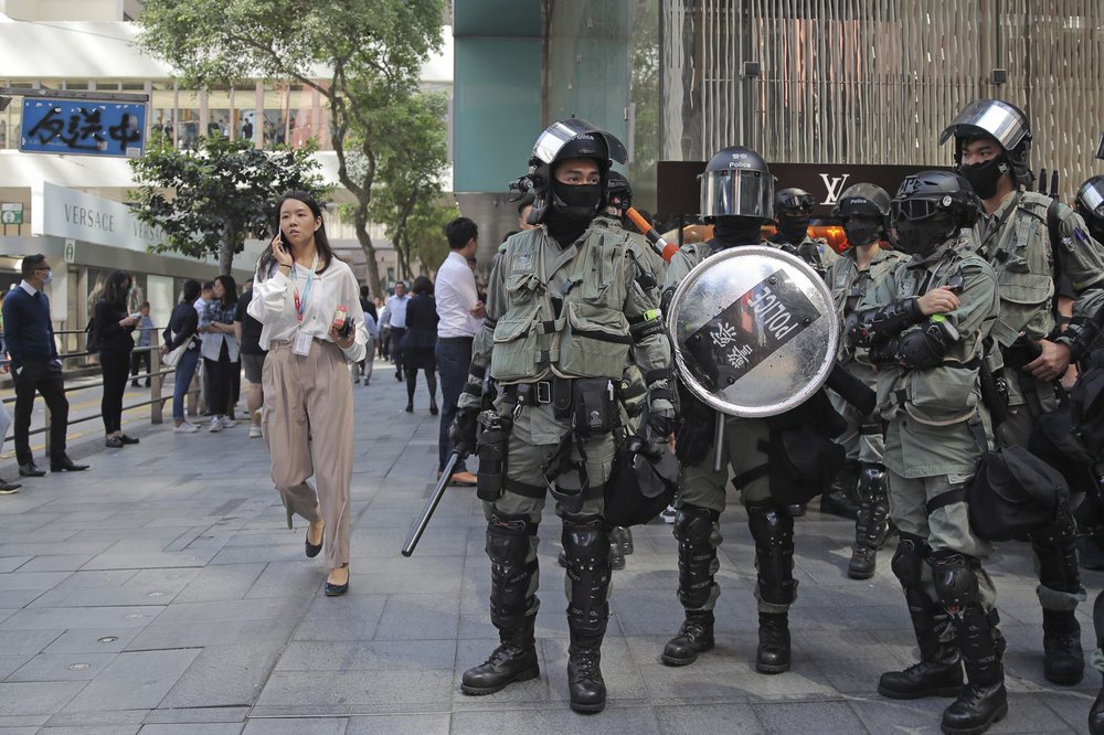Cảnh sát chống bạo động tại quận Trung Hoàn, Hong Kong. Ảnh: AP.