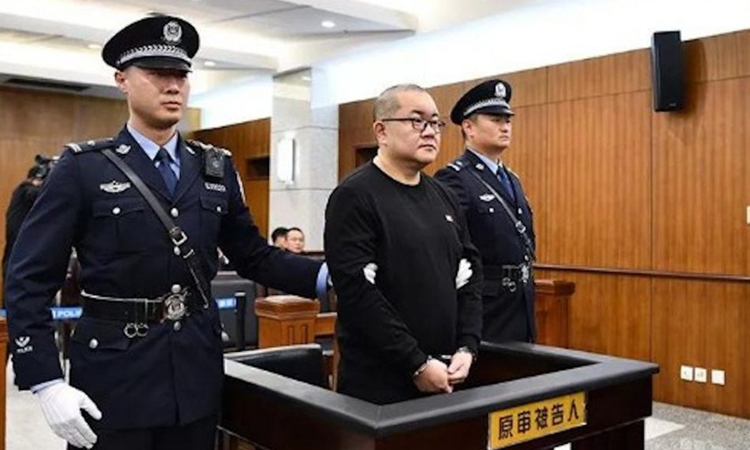 Sun Xiaoguo (bị còng tay) tại phiên xét xử ở Tòa án Nhân dân cấp cao tỉnh Vân Nam hôm 23/12. Ảnh: Southern Weekly.