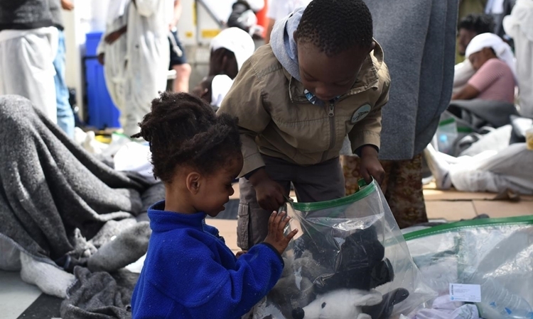 Hai em nhỏ trong trung tâm chăm sóc người tị nạn ở Italy. Ảnh: AFP.