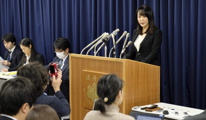 Bộ trưởng Tư pháp Nhật Bản Masako Mori phát biểu trong cuộc họp báo ngày 26/12. Ảnh: AFP.
