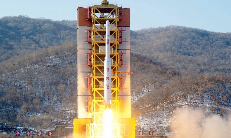Tên lửa đẩy mang vệ tinh được phóng tại bãi phóng vệ tinh Sohae ở tỉnh Bắc Pyongan, Triều Tiên đầu năm 2016. Ảnh: KCNA.
