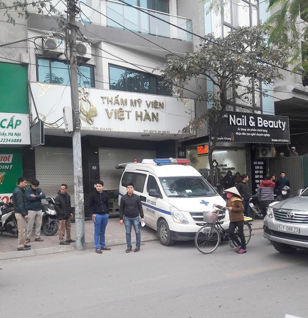 Ghi nhận lúc 15h chiều cùng ngày, rất đông lực lượng công an có mặt tại đây.Nhân chứng cho hay, vào trưa cùng ngày họ nghe được thông tin thẩm mỹ viện này xảy ra tai biến. Ngay sau đó, xe cứu thương và rất đông xe công an đã đến thẩm mỹ viện.