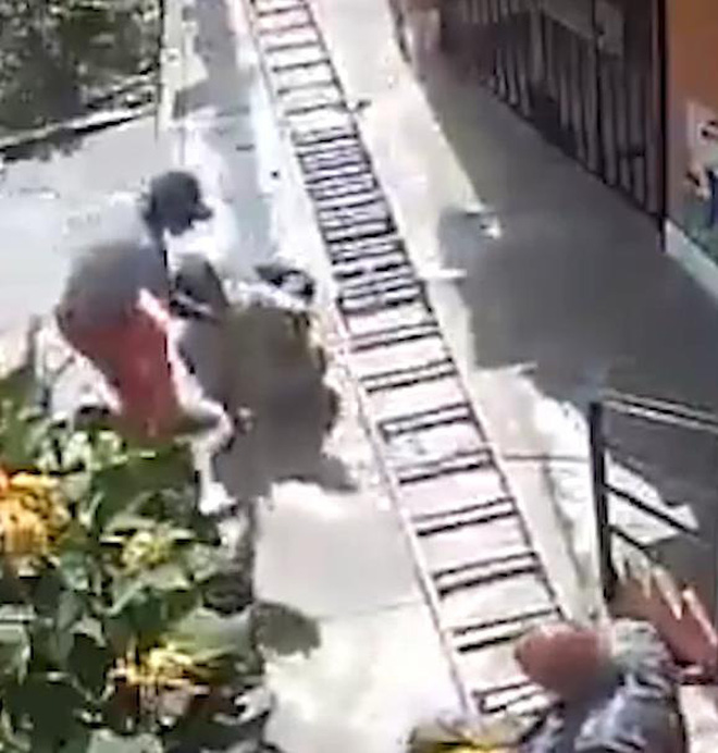 May mắn, do cách tiếp đất mà nạn nhận không gặp phải điều gì quá nguy hiểm. Thế nhưng, hành động đáng trách của ông bác này vẫn chưa dừng lại ở đó. Sau khi gây nguy hiểm cho người khác, người đàn ông còn tiếp tục đưa tay chỉ trỏ và mắng nhiếc trong khi hai người khác chạy tới vì bất ngờ.