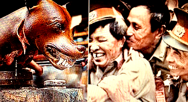 Trong vai kẻ thắng, cái ác lũ dép râu đã đến mức tận cùng, phơi trần cho thế giới văn minh nhìn thấy, trong đối xử bất nhân giữa chúng với con người, nay với loài vật lại hơn thế nữa, qua cái gọi là văn hóa ẩm thực chó, đã lột truồng thói ăn uống kém văn minh trước dư luận thế giới dép râu nón cối một lũ bẩn thỉu man rợ, thứ man rợ của bọn tham tàn ngu dốt. Để kết, xin trích đoạn viết về chuyện bọn chúng ăn chó bên quê nhà, đăng trên RFA (02/08/2013):