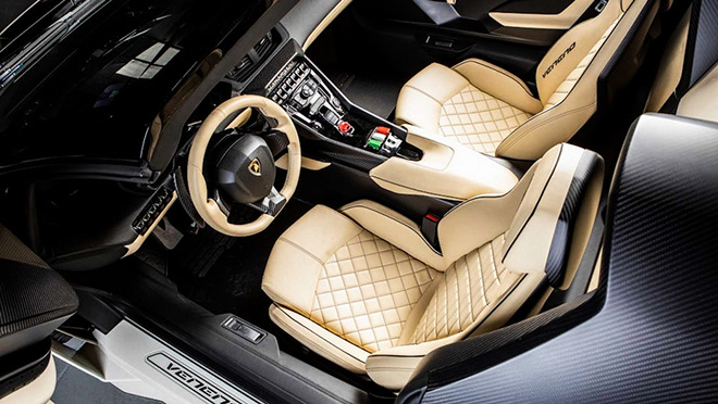 Tất cả các chi tiết từ ngoài vào trong nội thất của chiếc Lamborghini Veneno Roadster vẫn còn mới nguyên vẹn sau 4 năm được bán ra. Toàn bộ số tiền thu được từ cuộc đấu giá này sẽ được dành để phục vụ cho việc từ thiện.