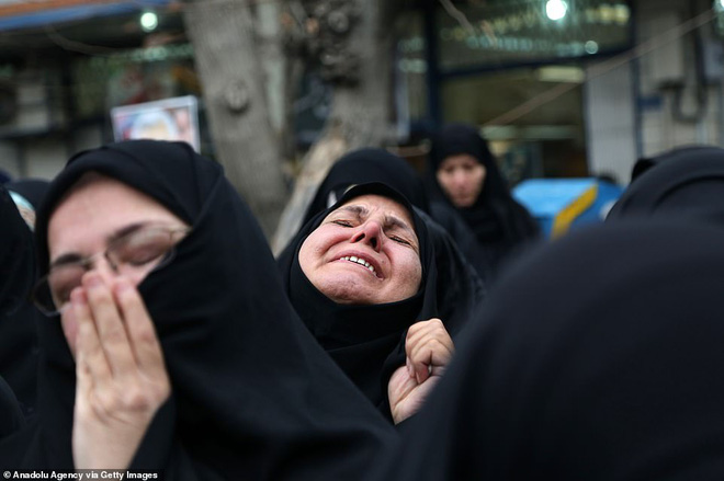 Người phụ nữ Iran khóc nghẹn trước cái chết của Tướng Soleimani. Ảnh: Anadolu/Getty