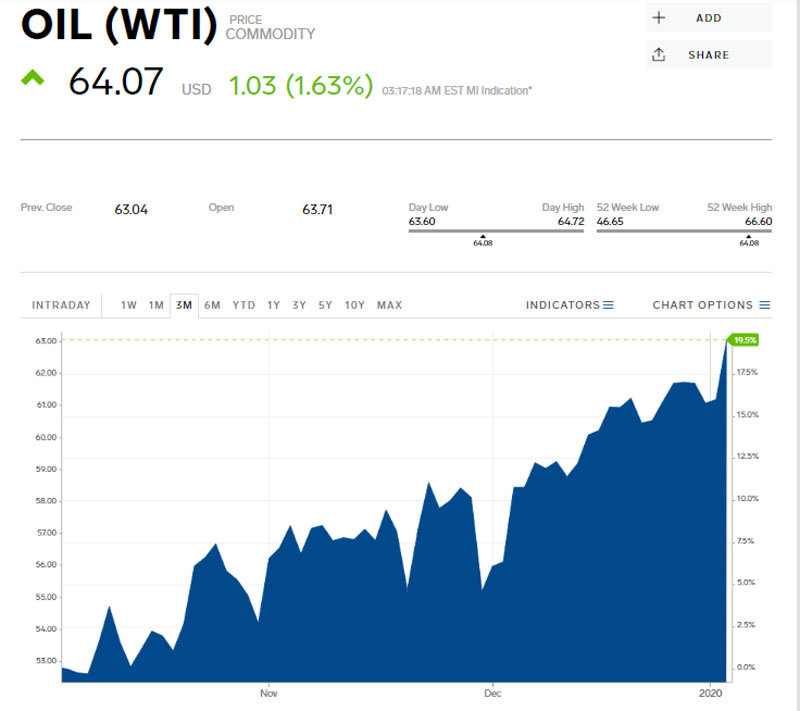 Các thị trường tài chính và hàng hóa Mỹ chao đảo trong bối cảnh Trung Đông nóng rực và có thể biến thành chảo lửa bất cứ lúc nào sau đợt không kích của Mỹ giết chết tướng Qasem Soleimani của Iran. Đây là nhân vật quyền lực số 2 tại đất nước Hồi giáo này và là Tư lệnh đơn vị Quds thuộc Lực lượng Vệ binh Cách mạng Hồi giáo Iran (IRGC). Soleimani cũng là người được cho là đứng đằng sau một loạt chiến dịch quân sự và ngoại giao giúp mở rộng ảnh hưởng của Tehran ở khu vực.