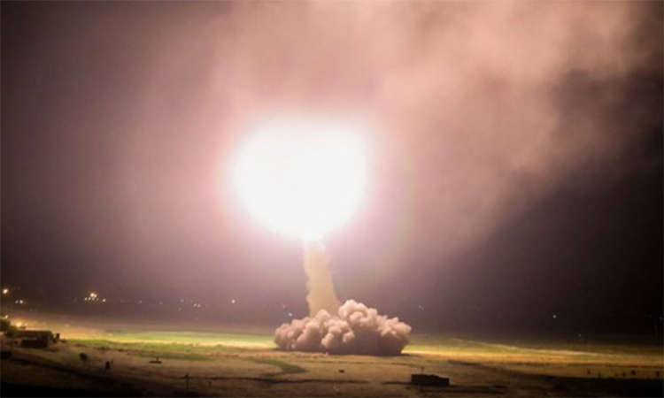Iran phóng tên lửa nhằm vào lực lượng Mỹ đồn trú tại Iraq ngày 8/1. Ảnh: IRNA.