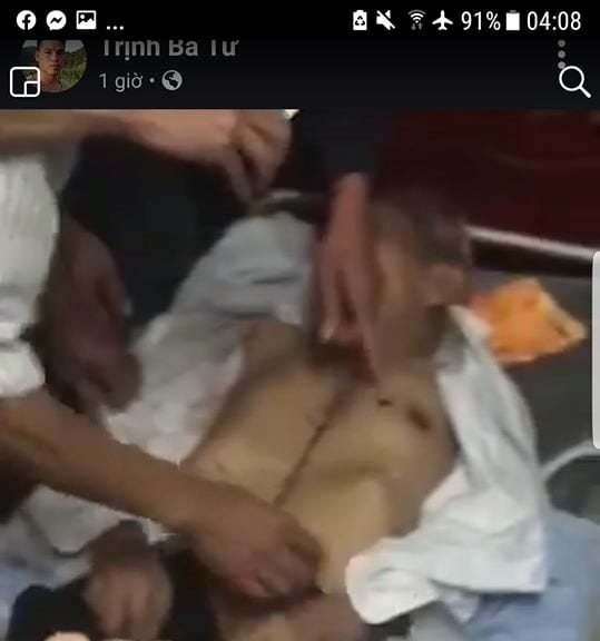 Thi thể cụ Lê Đình Kình có vết đạn bắn xuyên tim. (Hình: Facebook Trịnh Bá Tư cắt từ video clip)