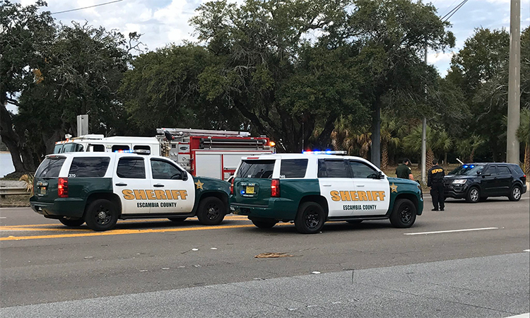 Cảnh sát phong tỏa khu vực quanh căn cứ Pensacola, bang Florida, sau khi Alshamrani bắn chết ba người tháng 12/2019. Ảnh: Twitter/RebekahCastorTV.