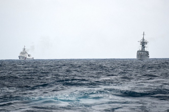 Tàu chiến Indonesia song hành với tàu cảnh sát biển Trung Quốc (Ảnh: Đa Chiều)
