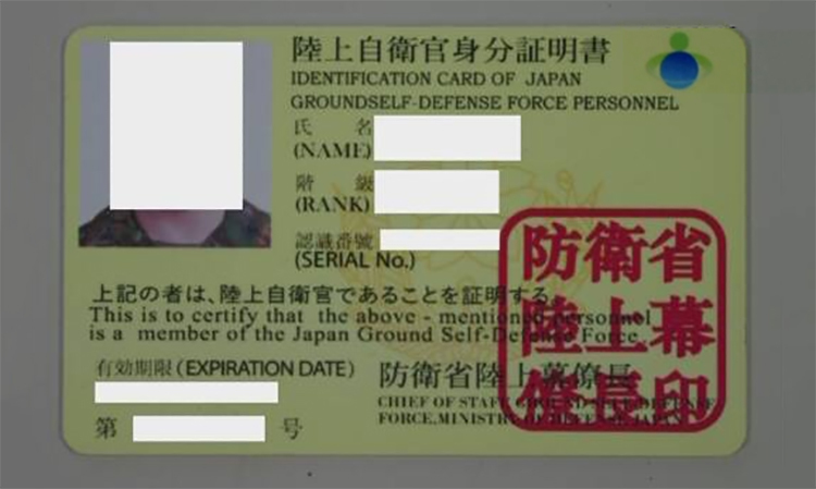 Căn cước JSDF giả của sinh viên Trung Quốc bị tịch thu ngày 14/1. Ảnh: NHK.