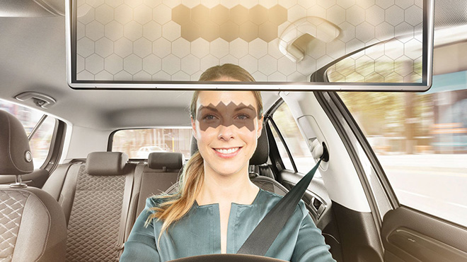 Bosch trang bị một màn hình tinh thể lỏng/ LCD thay thế cho tấm chống nắng cũ. Kết hợp với nó là một camera và phần mềm nhận diện khuôn mặt công nghệ cao. Nhờ đó, màn hình này sẽ chỉ che nắng ở phần mắt người lái, giúp họ lái xe một cách dễ chịu nhất.