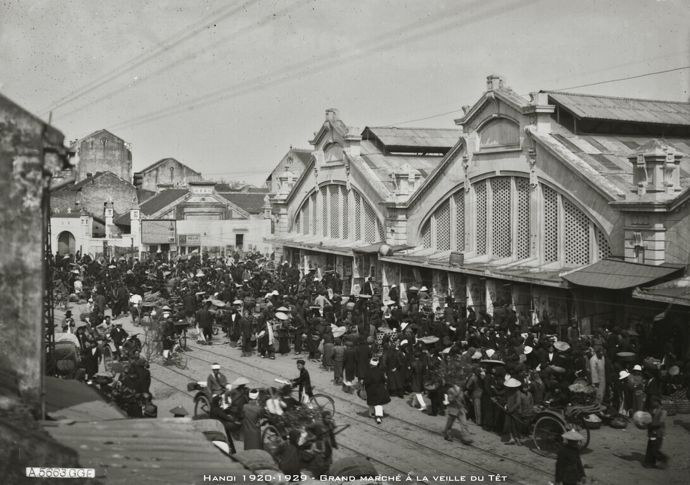 Chợ Đồng Xuân ngày 30 Tết tấp nập người bán, người mua. Ảnh chụp vào những năm 1920.