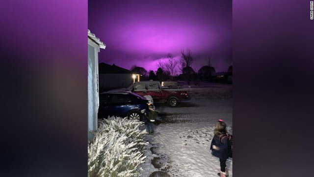 "Lúc nào ở đó cũng có ánh đèn màu tím nhưng nó thường không sáng rực trên bầu trời như thế này", cô nói với CNN. "Sáng hôm đó, trời có tuyết. Vẫn còn rất nhiều sương mù và mây".