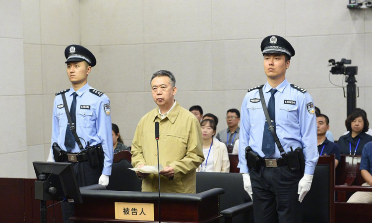 Cựu chủ tịch Interpol Mạnh Hoành Vĩ bị Tòa án Nhân dân Trung cấp thứ nhất ở Thiên Tân, Mạnh Hoành Vĩ bị tuyên 13 năm 6 tháng tù và phải nộp phạt hai triệu nhân dân tệ (290.000 USD).