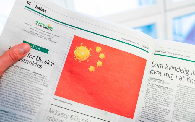 Quốc kỳ Trung Quốc bị thay bằng những con virus corona, khiến Đại sứ quán nước này tại Đan Mạch gọi tranh biếm họa đó là “một sự xúc phạm đối với Trung Quốc”, “gây tổn thương tới cảm xúc của người dân Trung Quốc”, nhưng tờ báo của Đan Mạch từ chối xin lỗi Trung Quốc về hình châm biếm họa virus corona.
