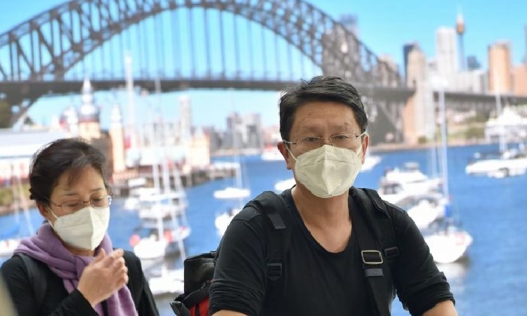 Du khách Trung Quốc mang khẩu trang ở Sydney, Australia, hôm 23/1. Ảnh: AFP.