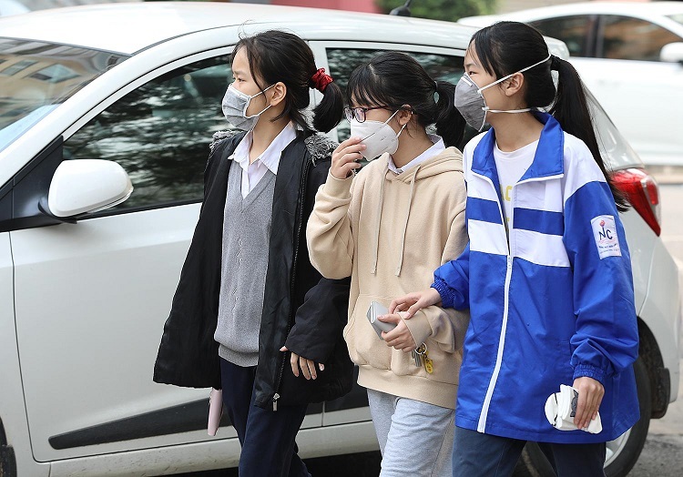 Học sinh tại Hà Nội đeo khẩu trang phòng dịch viêm phổi Corona. Ảnh: Ngọc Thành