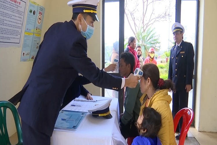 Nhà chức trách kiểm tra thân nhiệt người nhập cảnh tại Cửa khẩu quốc tế Lao Bảo. Ảnh: Hoàng Táo