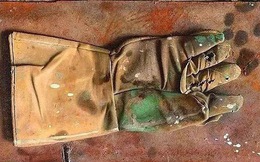 Cuối cùng, ánh mắt ông dán vào một trong những chiếc găng tay đã bị dùng đến cũ nát của công nhân được bỏ lại trên bàn.