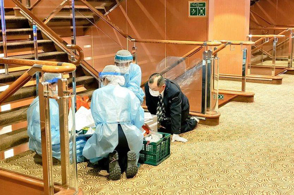 Các nhân viên y tế Nhật làm nhiệm vụ trên tàu Diamond Princess - Ảnh: TWITTER