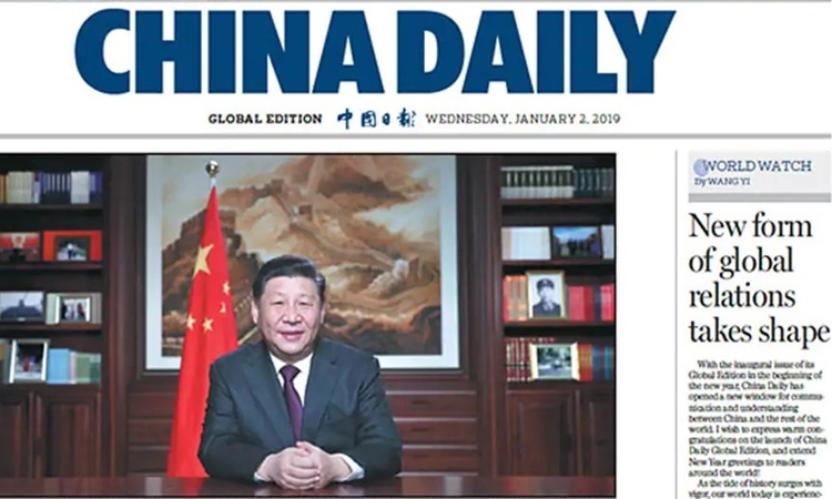Trang nhất ngày 2/1/2019 của tờ China Daily phiên bản quốc tế. Ảnh chụp màn hình China Daily.