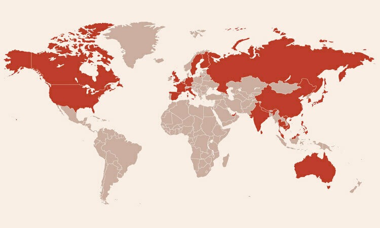 Các nước có bệnh nhân viêm phổi do nCoV.