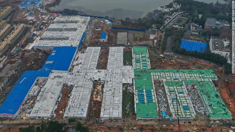 Ảnh chụp từ trên cao quá trình xây dựng bệnh viện Hỏa Thần Sơn (ảnh: CNN)