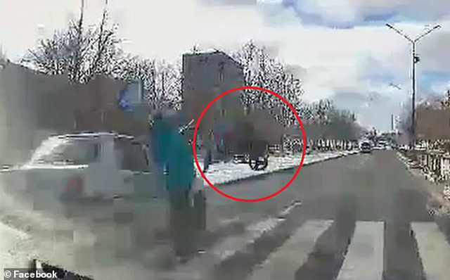 Theo trang tin Daily Mail của Anh, sự việc xảy ra vào ngày 5/1 vừa qua tại ngã tư dành cho người đi bộ ở thành phố Energodar, Ukraine và được camera hành trình của một chiếc xe di chuyển trên đường vào thời điểm xảy ra tai nạn ghi lại.