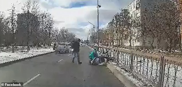 Phản ứng trước tình huống bất ngờ này, Tkachenko đã kịp thời dừng lại song chiếc ô tô đã lao trúng xe đẩy và hất tung em bé trong xe lên không trung trước khi em bé rơi mạnh xuống khu vực rào chắn đối diện bên đường.
